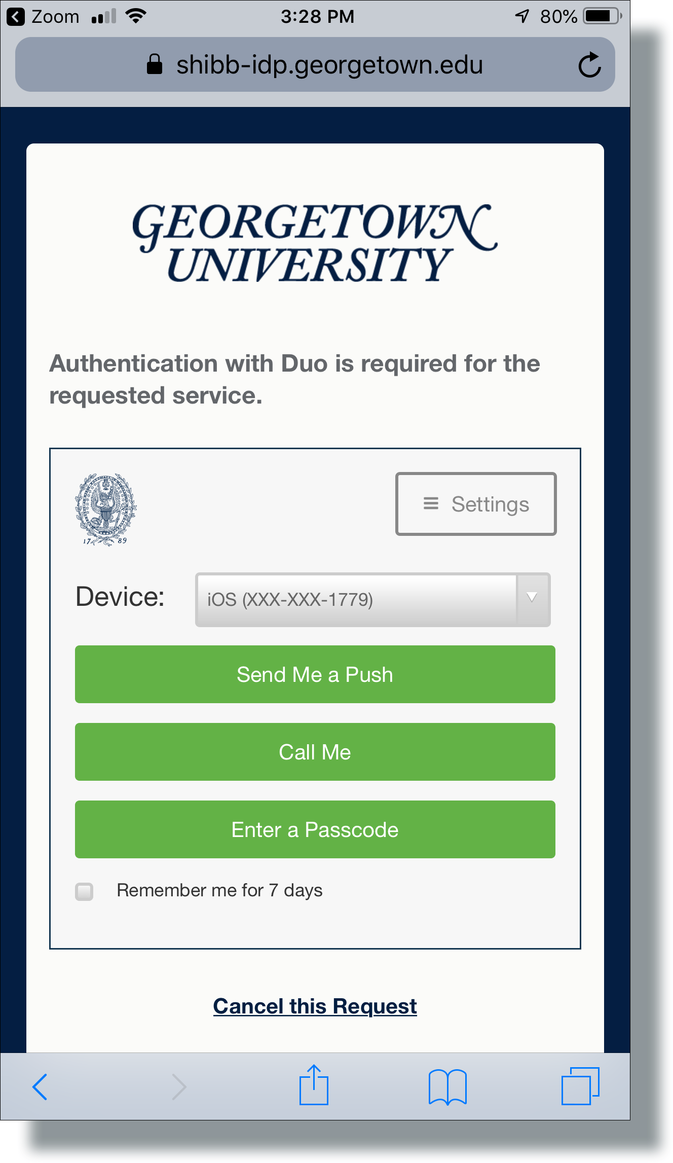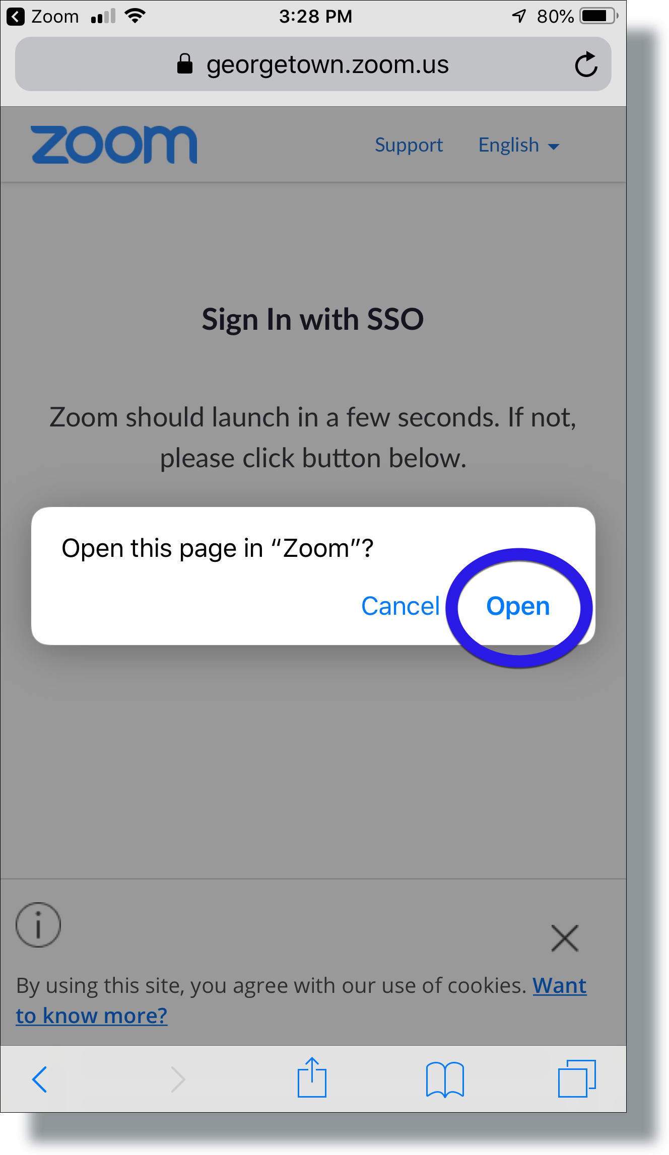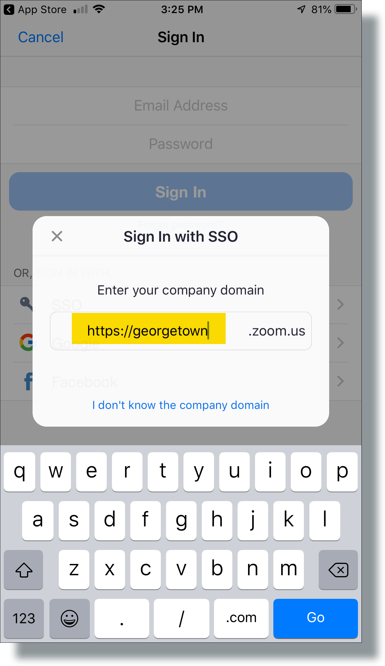 Enter https://georgetown in the text box to complete the domain name, as shown below, then tap go.